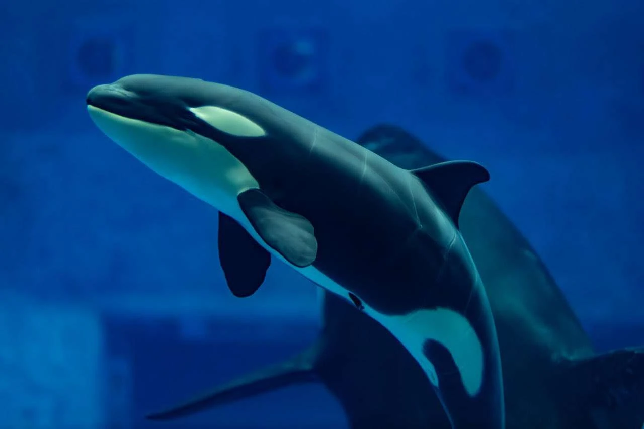 On December 29th, 2023, after two injections of oxytocin and a difficult 10-hour labor, Naya gave birth to a healthy female calf: the first captive orca born in Russia. At the time of her birth, she was about 2 meters in length and weighed 150kg. She immediately swam up for a breath and Naya began assisting her instantly. The calf appeared strong and alert and stayed close to her mom. Naya was showing good maternal instincts and seemed protective of her. The two were not put on public display, in order to allow bonding and recovery.